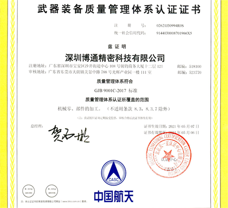 深圳市創(chuàng)思維企業(yè)管理技術(shù)服務(wù)有限公司輔導(dǎo)深圳博通順利通過GJB 9001C-2017武器裝備質(zhì)量管理體系認(rèn)證與ISO9001質(zhì)量管理體系認(rèn)證兩項認(rèn)證。